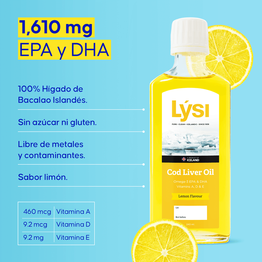 Lýsi de Hígado de Bacalao es el más querido. Omega-3 EPA/DHA + Vitaminas A, D y E, es la fórmula más completa e ideal para ti y para toda tu familia a partir de los 14 años.
