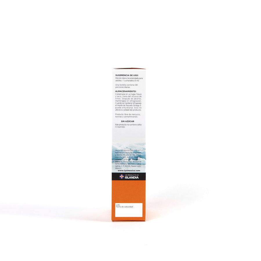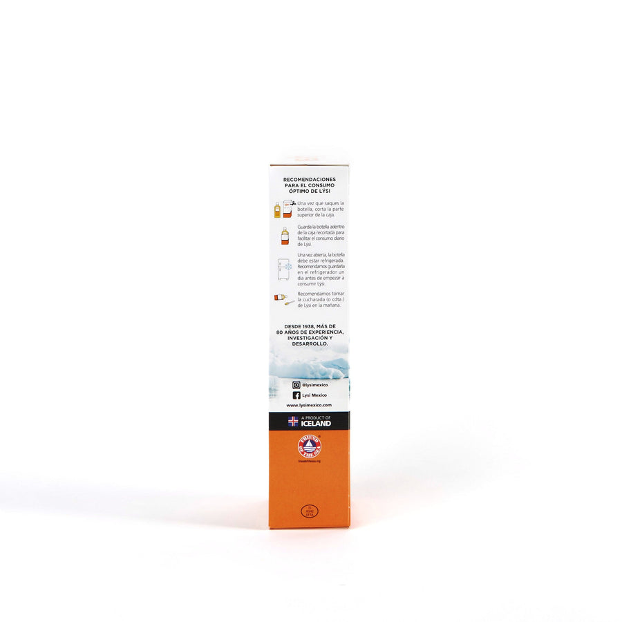 Cuando abras un Lýsi nuevo, te recomendamos cortar la caja de arriba y dejar la parte de abajo, lo suficiente para que la botella quede dentro de la caja. Como todos los botes de aceites, a veces se puede chorrear un poquito y esto puede ayudarte a mantener limpio el refrigerador.